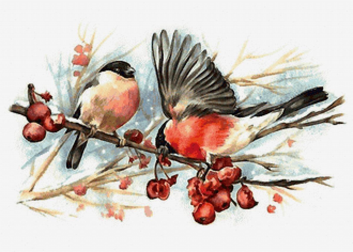 ![Зимние птицы акварелью]()