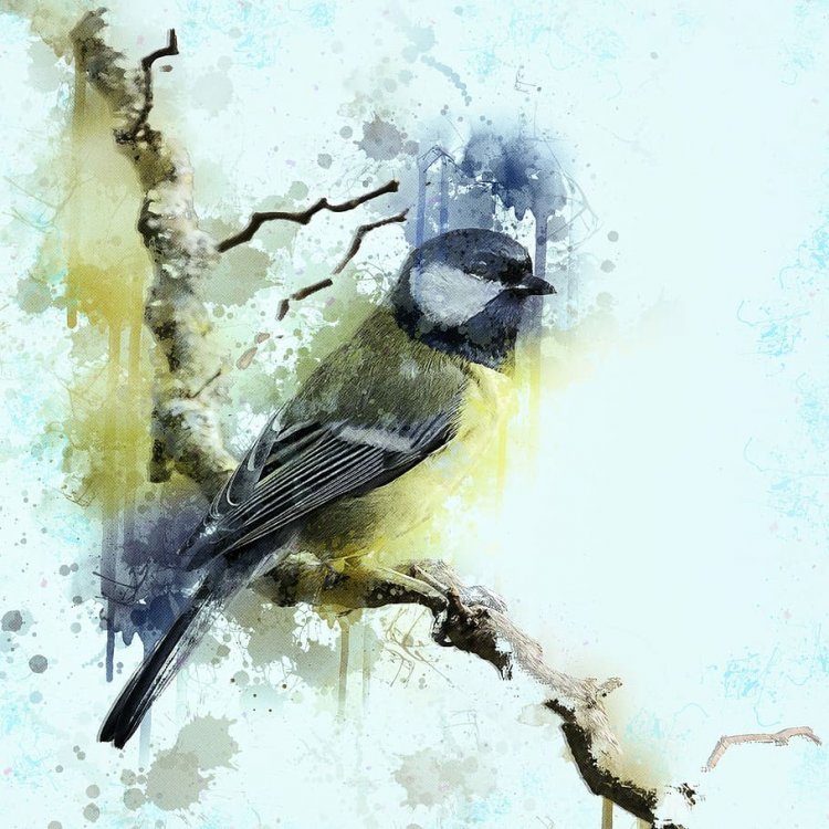 Синица акварелью