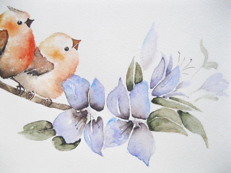 ![Птички на ветке акварель]()
