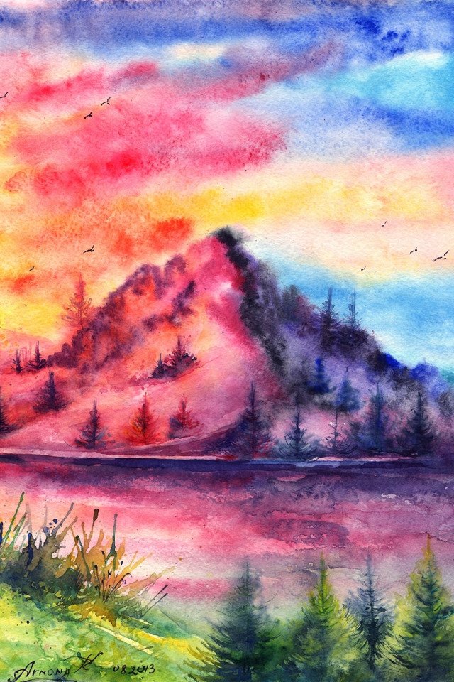 ![Рассвет акварелью]()