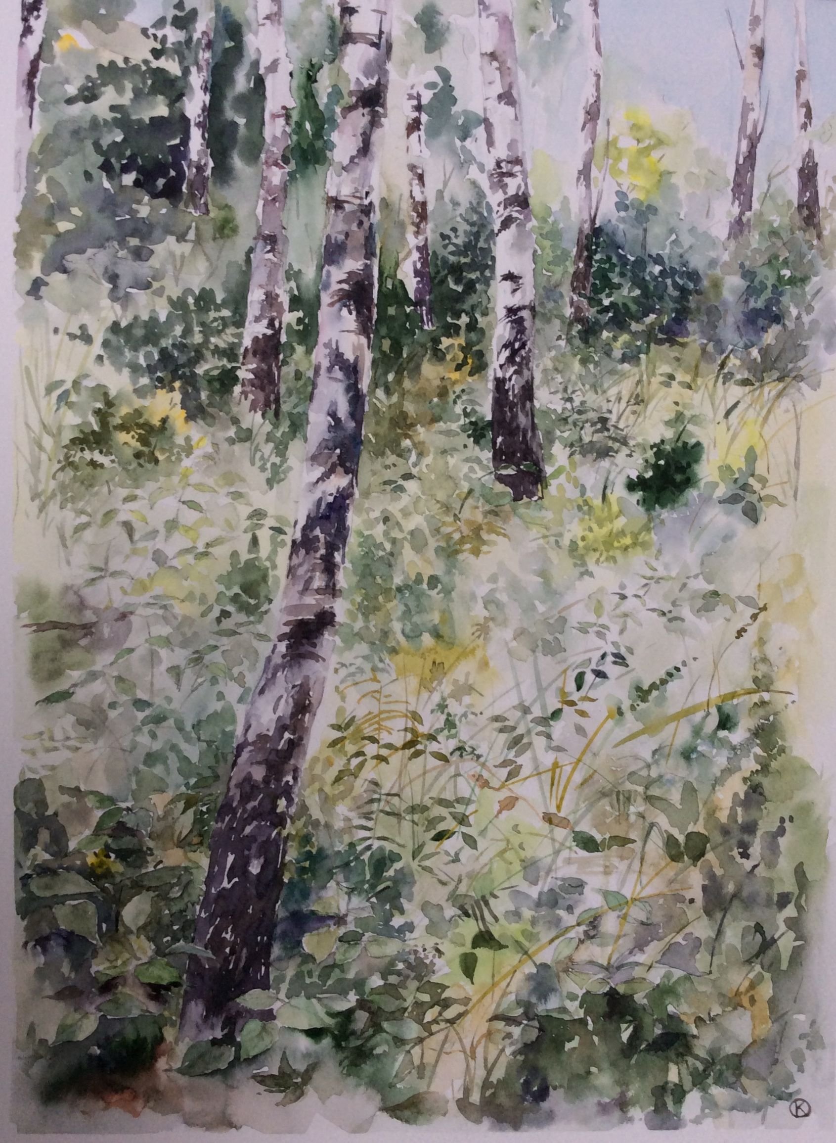 Березовая роща акварелью