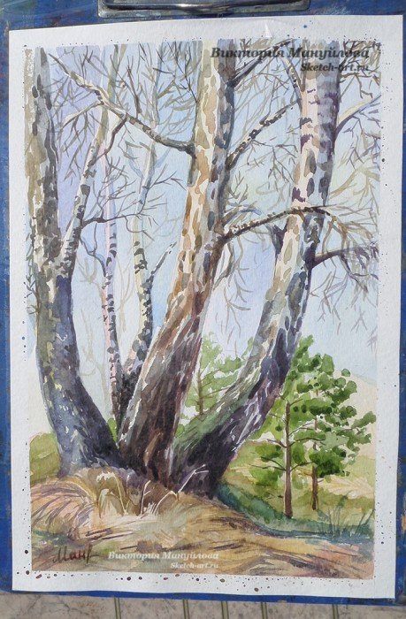![Этюды деревьев акварелью пленэр береза]()