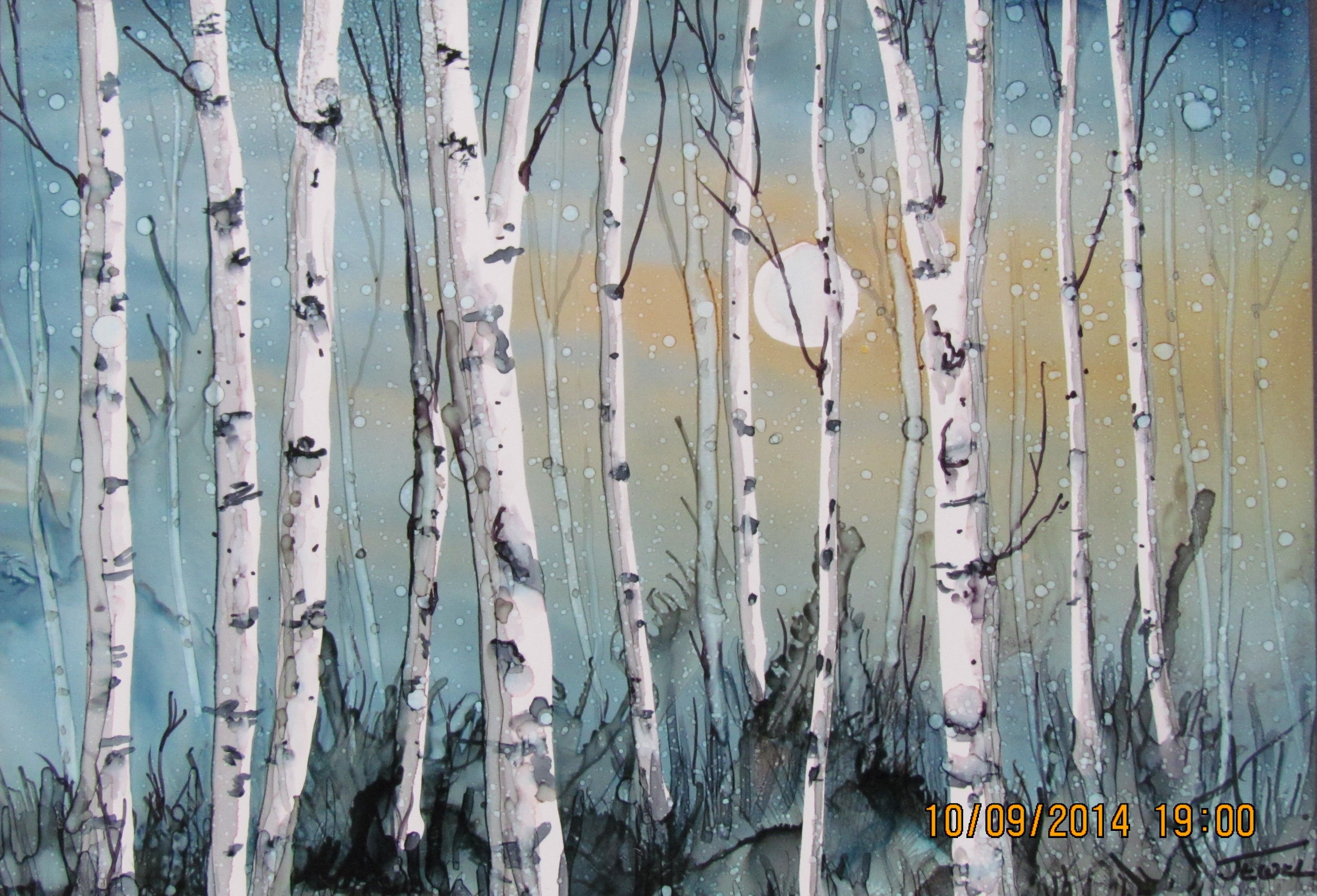 ![Береза зимой акварель]()