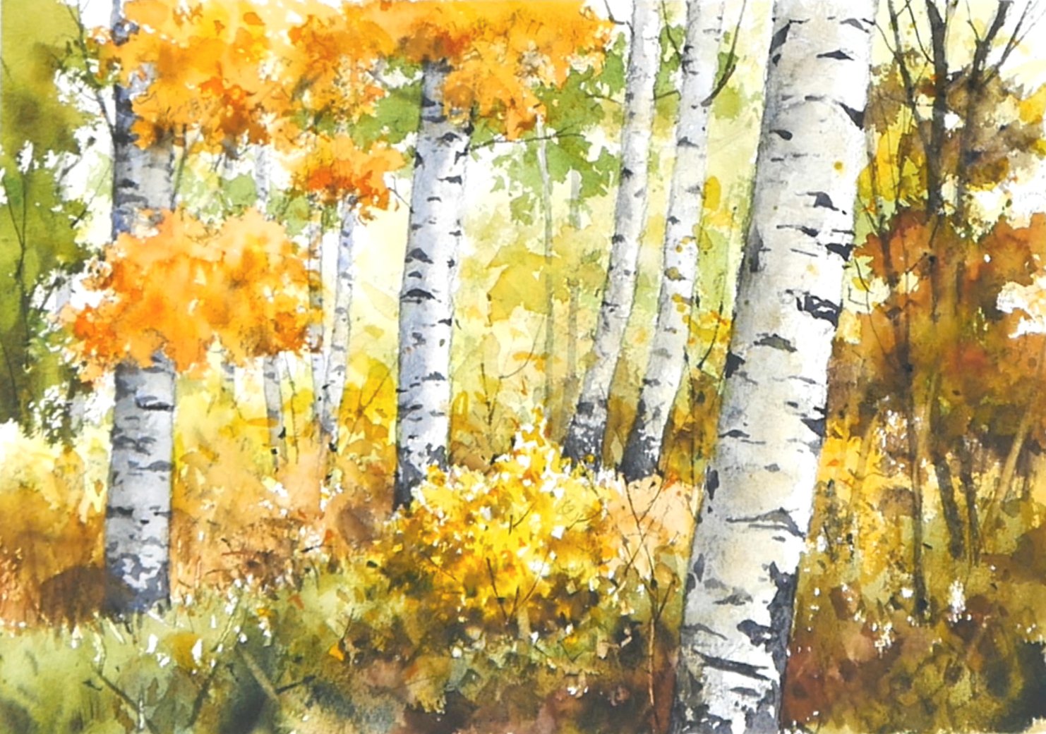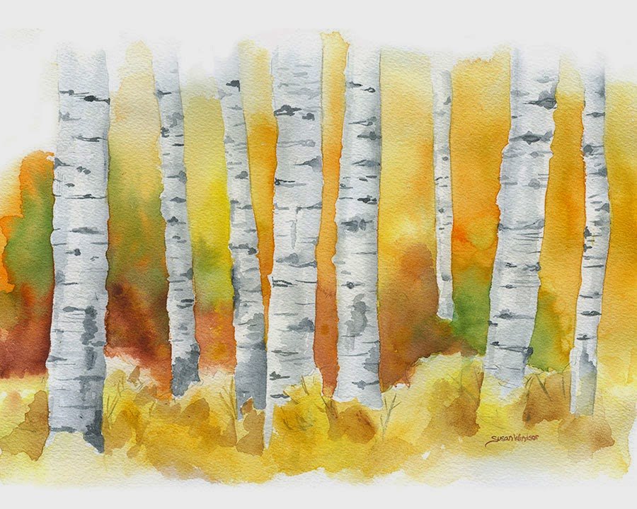 Осенние березы акварелью