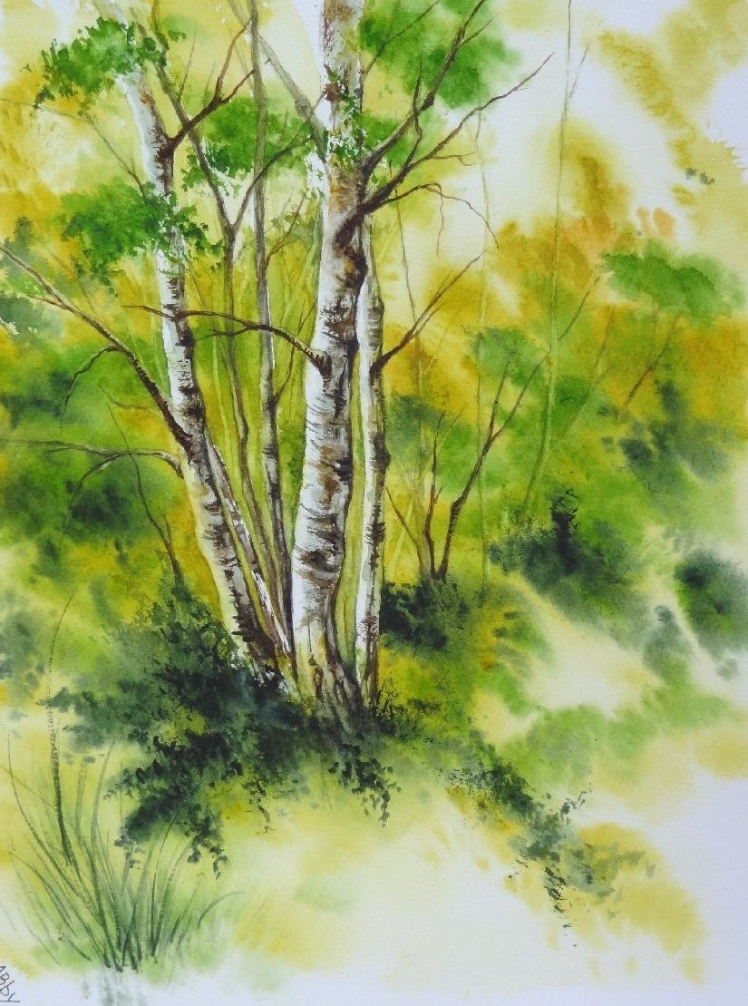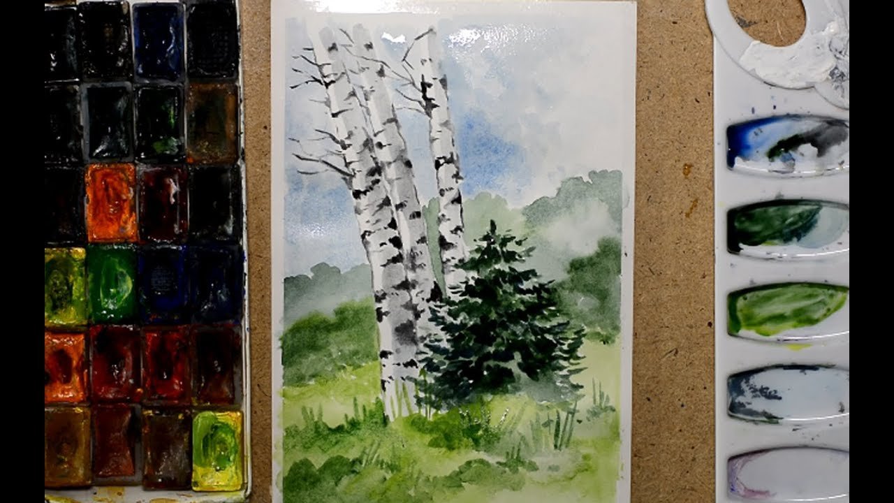 Береза акварелью мастер класс