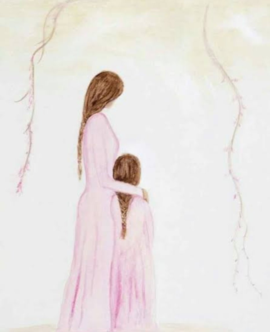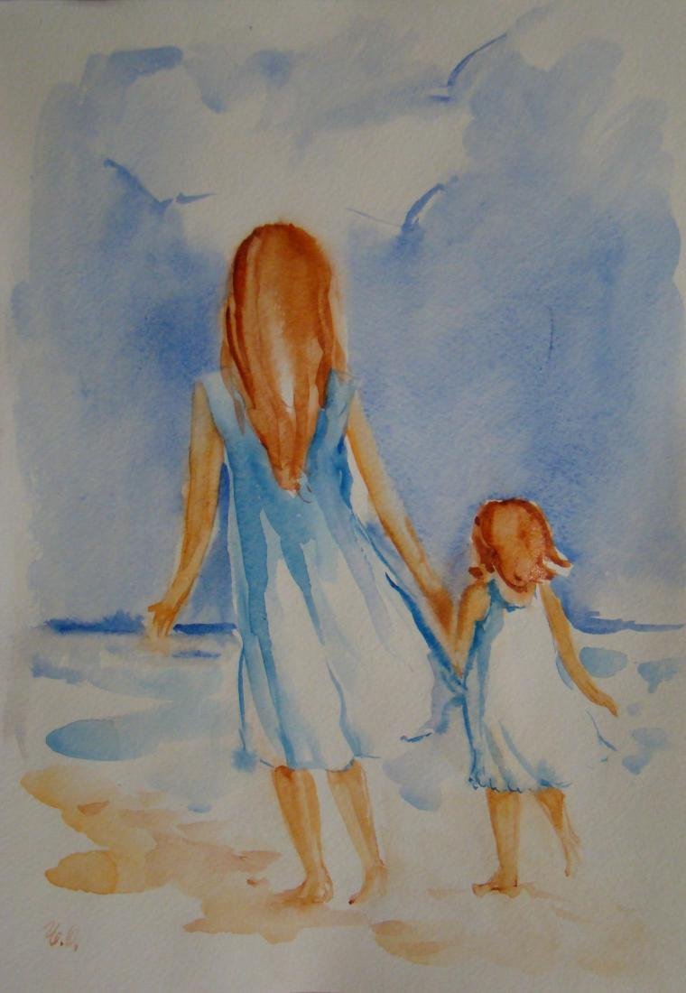 ![Мама с дочкой картина акварель]()