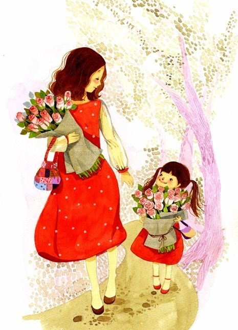 ![Мама иллюстрации трогательные]()