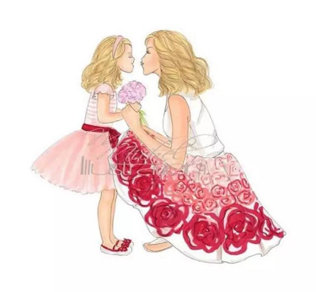 Фэшн иллюстрация мама и дочка