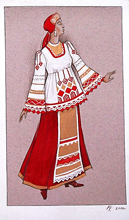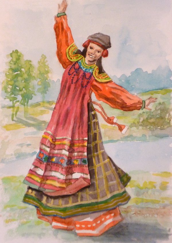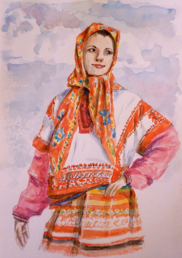 ![Мошкова Инна русский народный костюм акварель]()