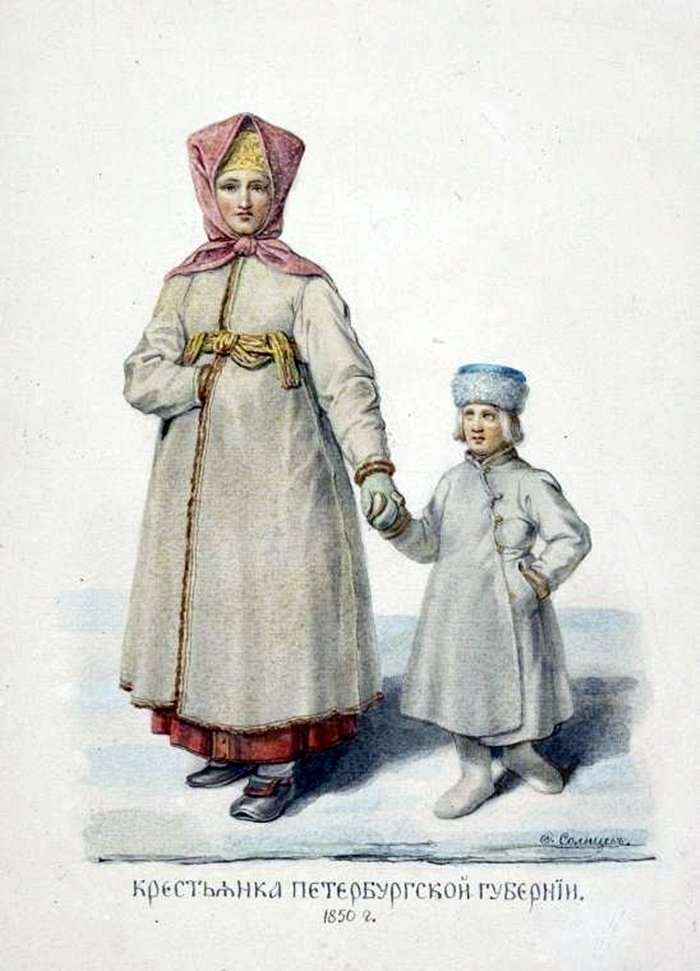 ![Народный костюм Архангельской губернии рисунок]()