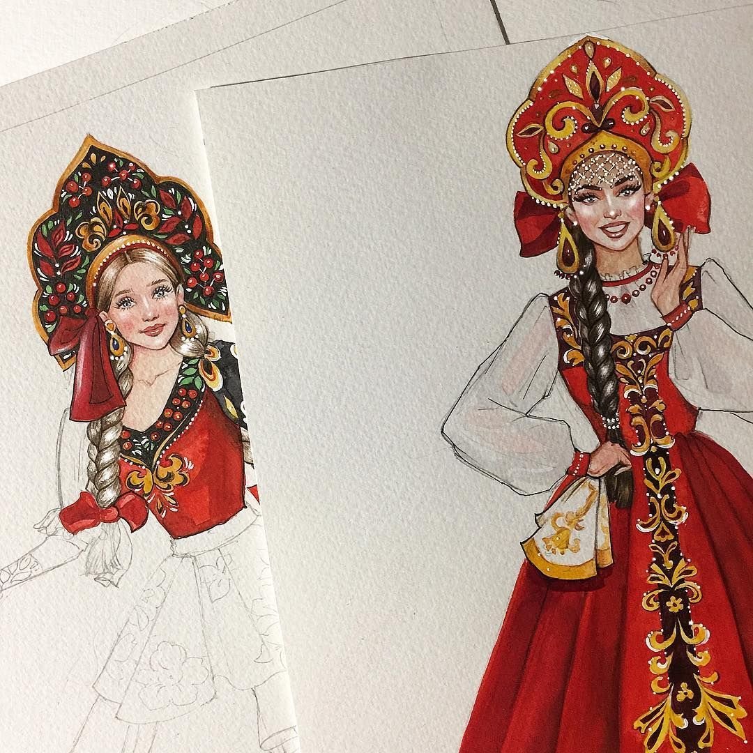 Рисование на тему народная одежда