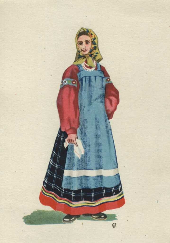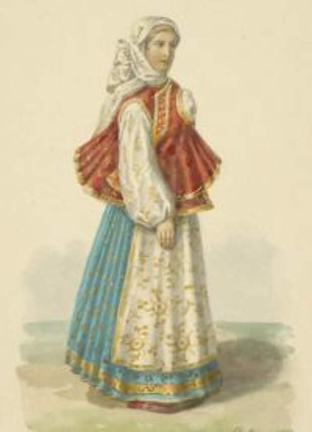 Народный костюм Архангельской губернии рисунок