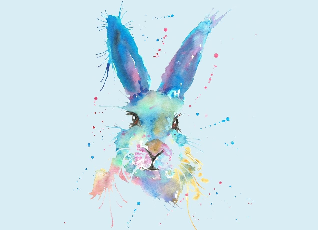 ![Зайчик в стиле акварель]()