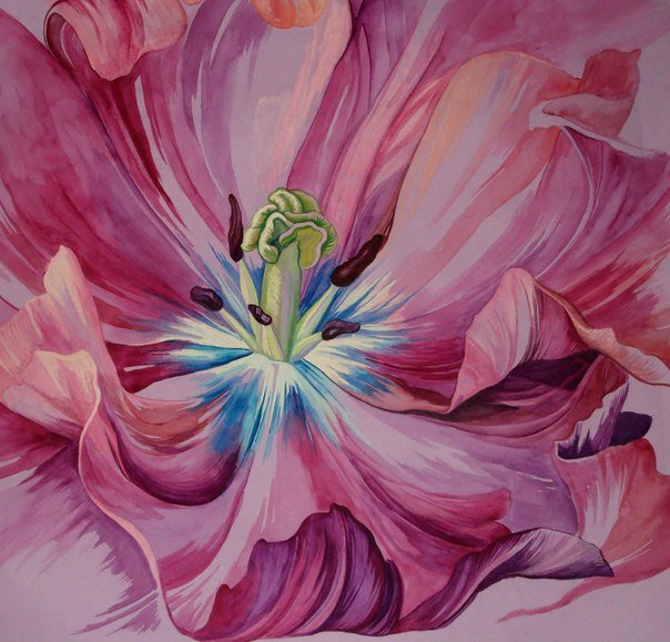 Крупные цветы акварелью
