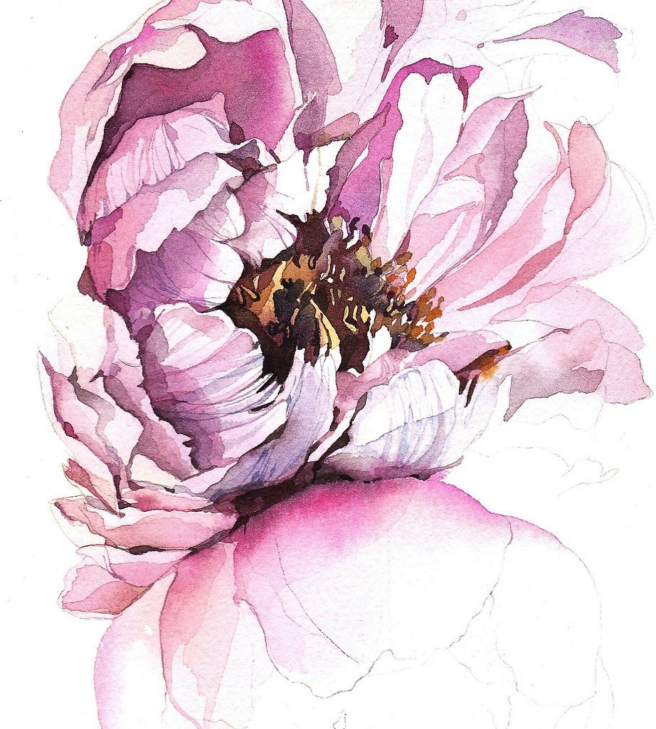 ![Карен Клюглейн пион акварель]()