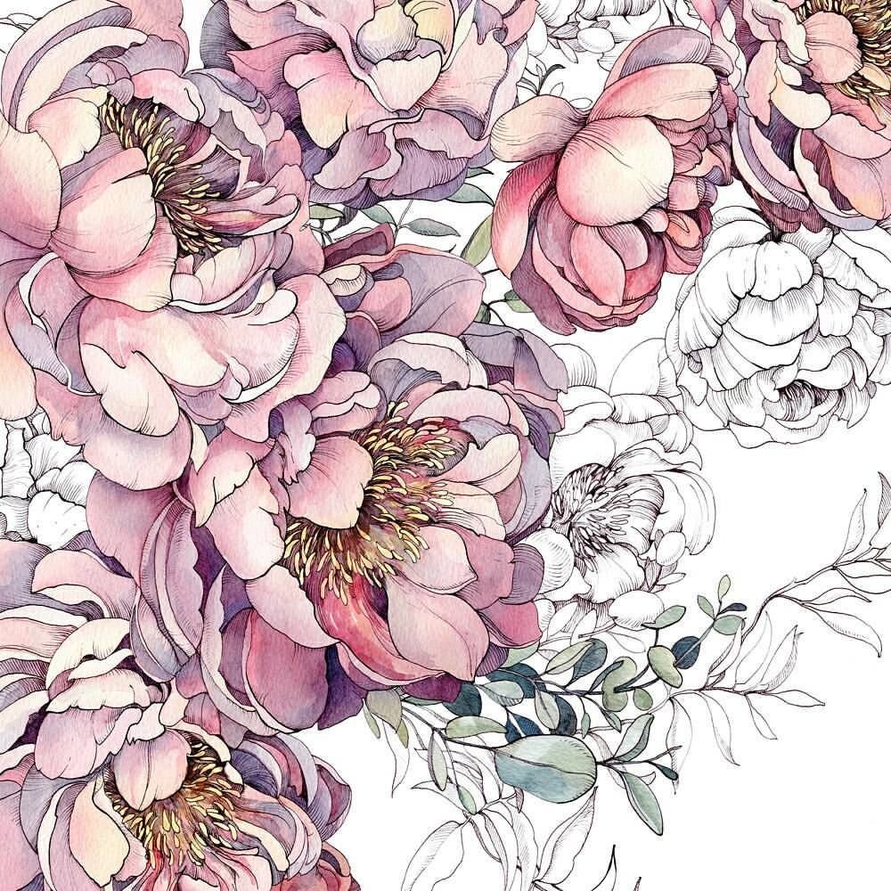 ![Акварельные пионы]()