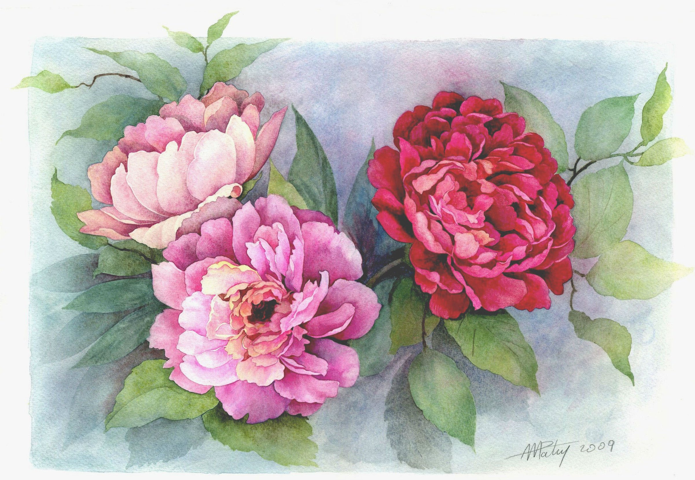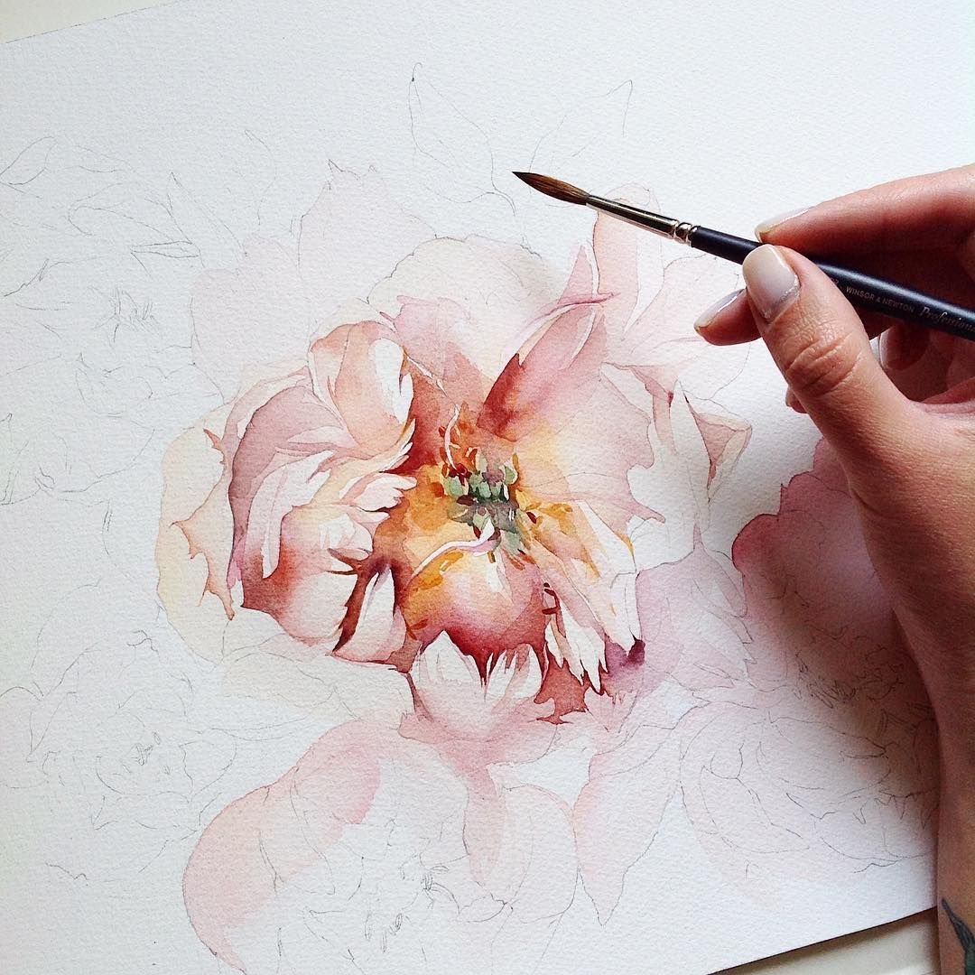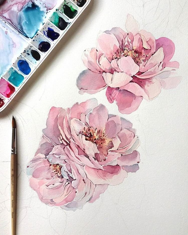 ![Акварели пионы лессировка]()