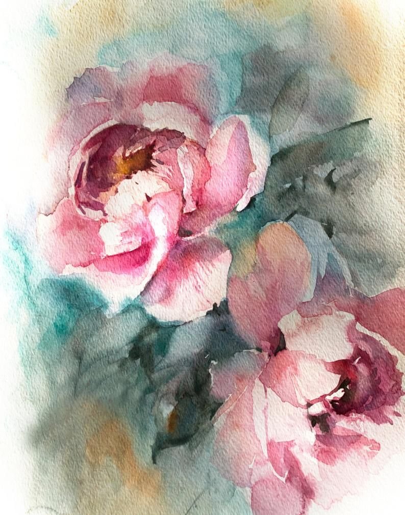 ![Нежные розы акварель]()