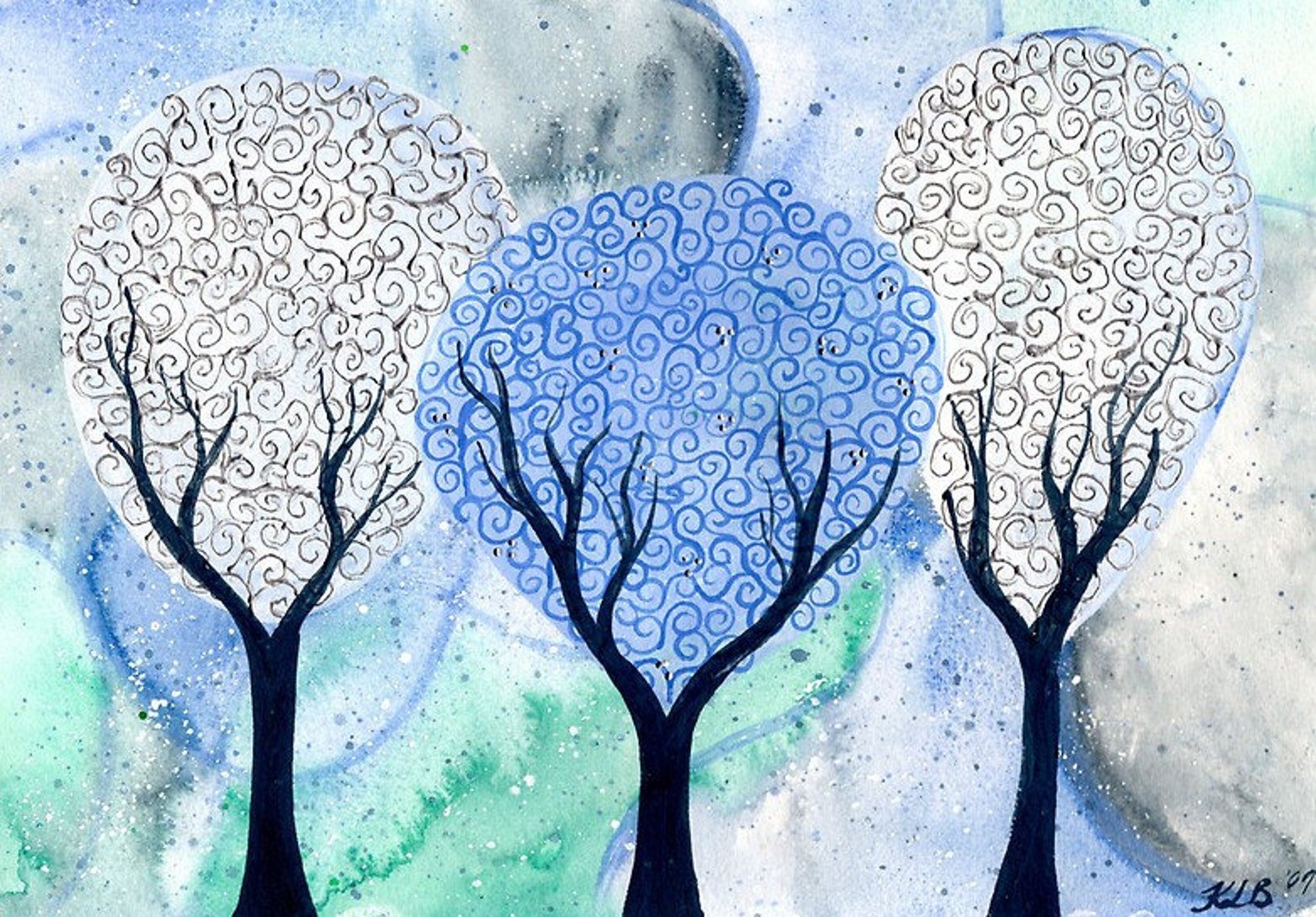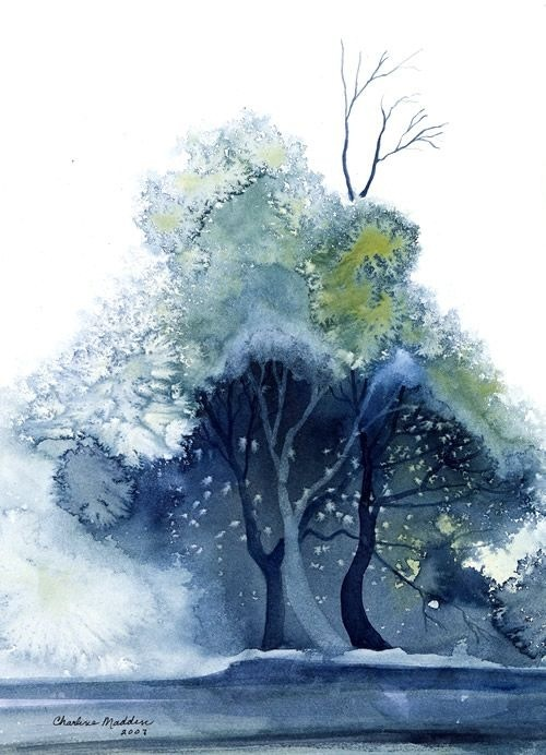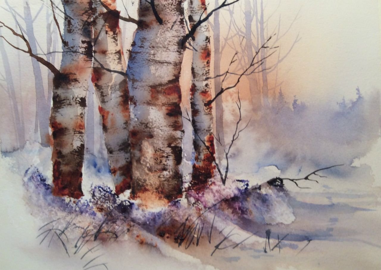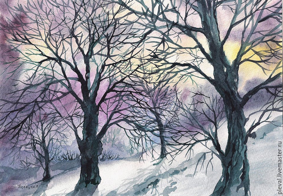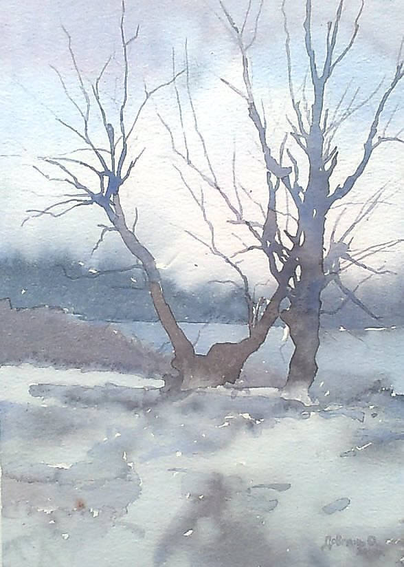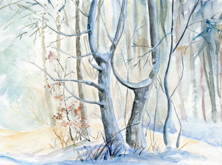 ![Деревья зимой акварелью]()