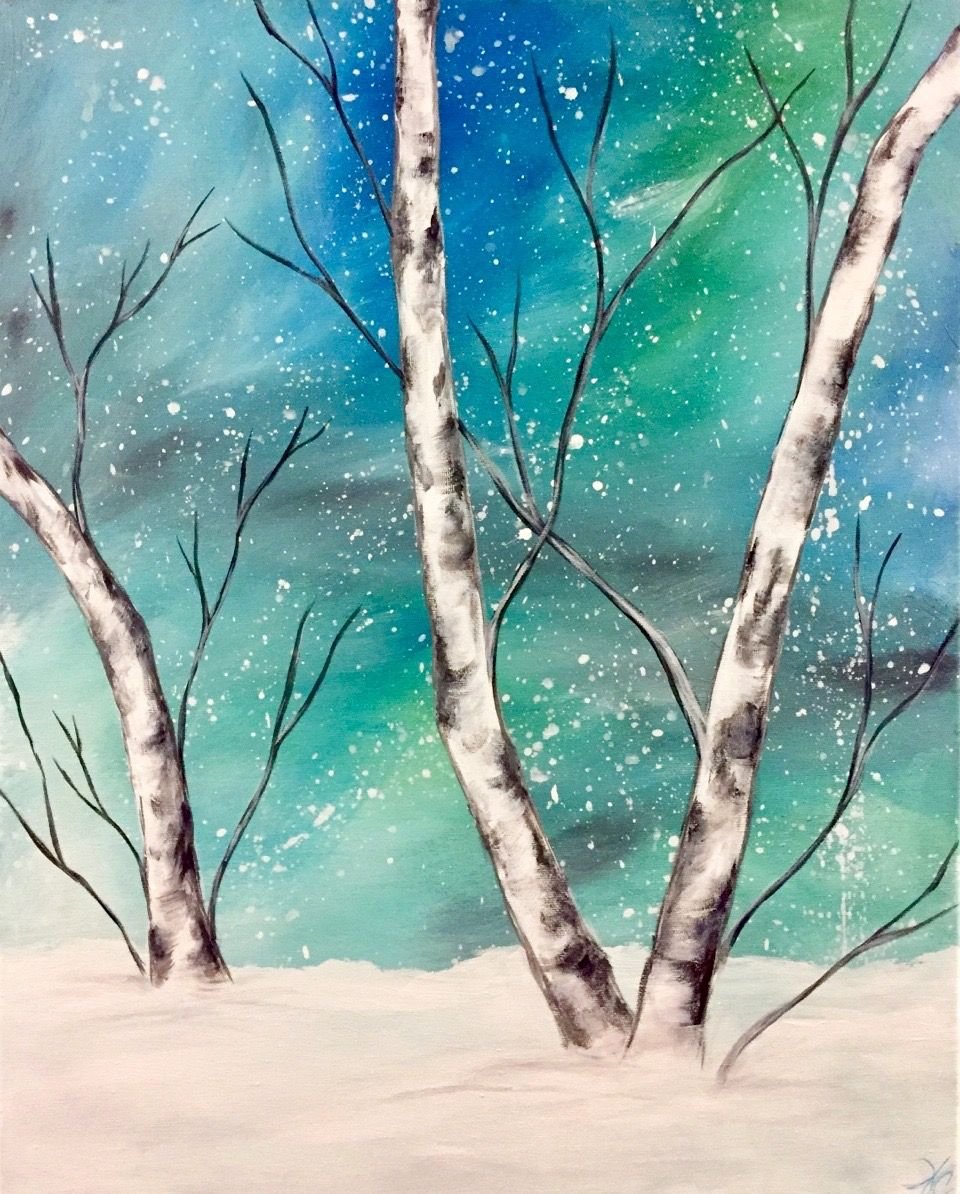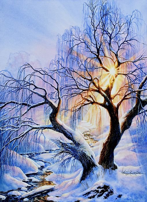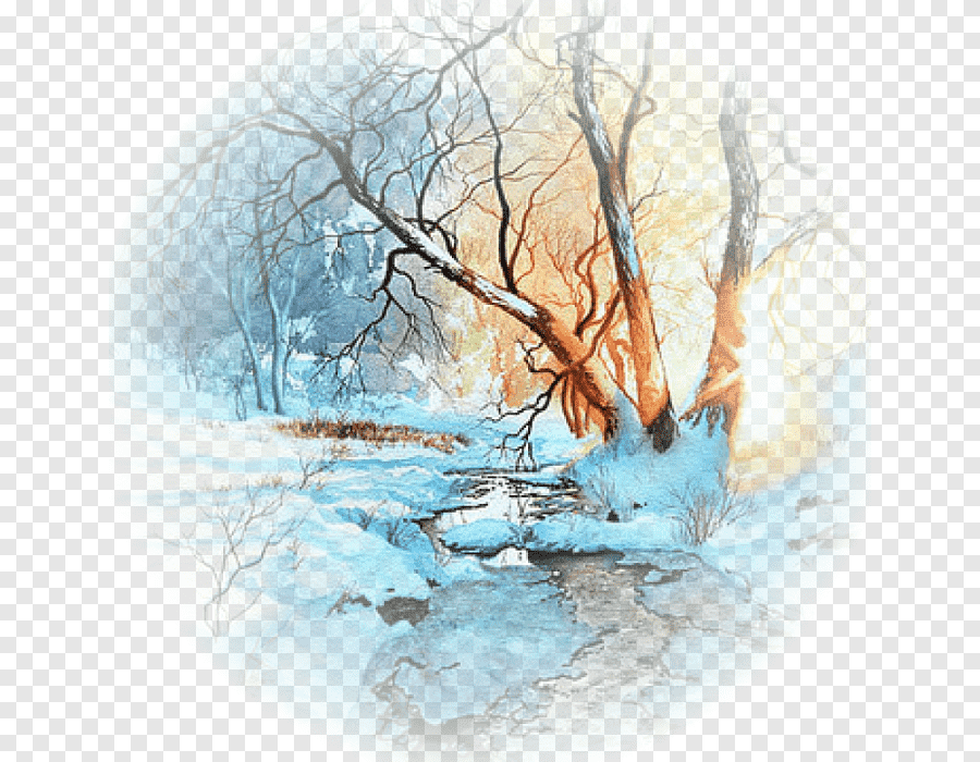 ![Зима деревья живопись]()