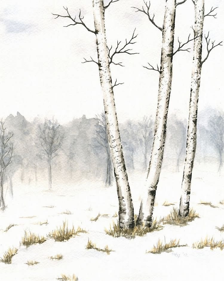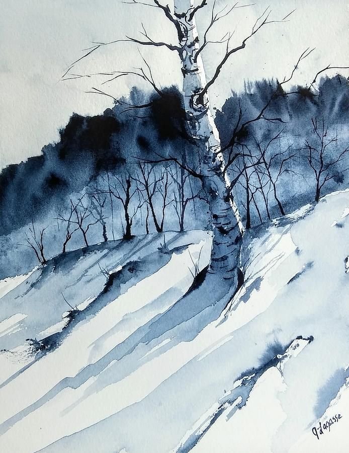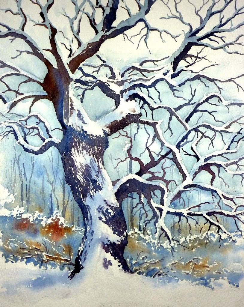 Рисунок дерево зимой акварелью (47 фото)