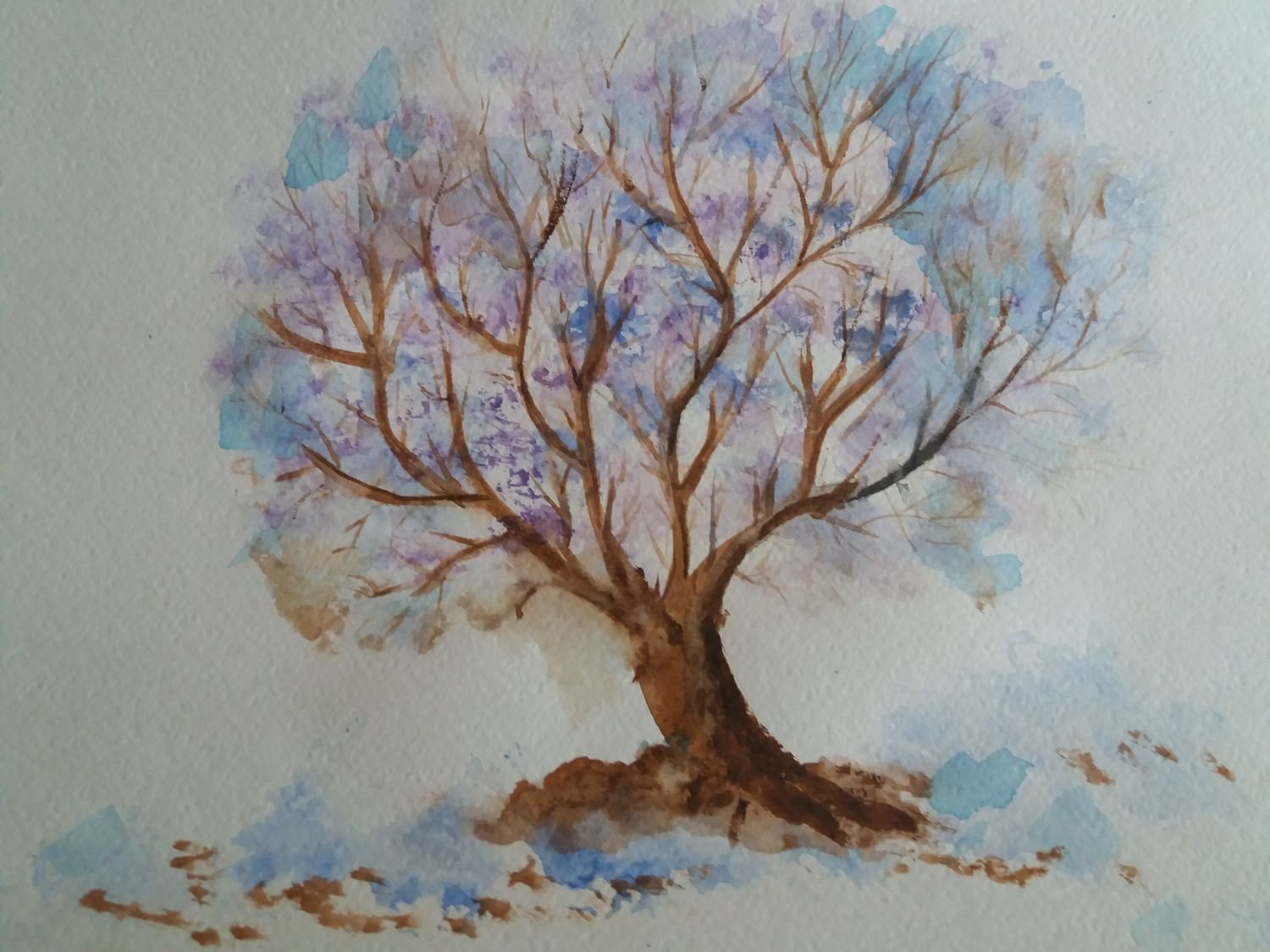 Нарисовать зимнее дерево акварелью