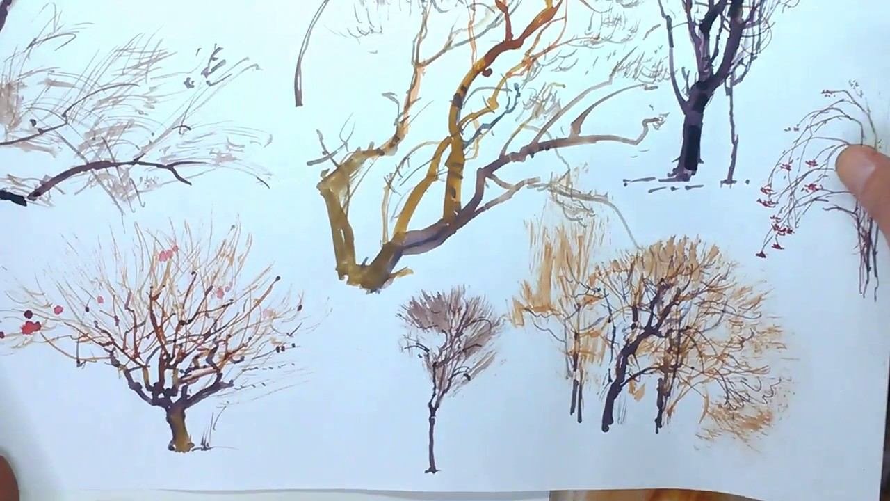 ![Акварельная живопись деревья]()