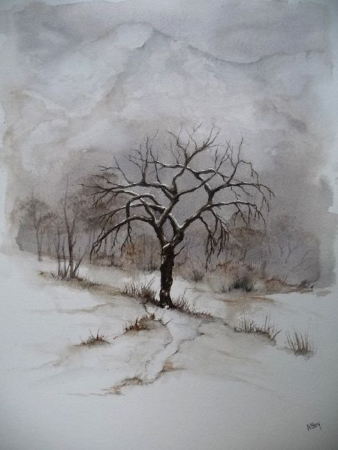 ![Зимнее дерево акварелью]()