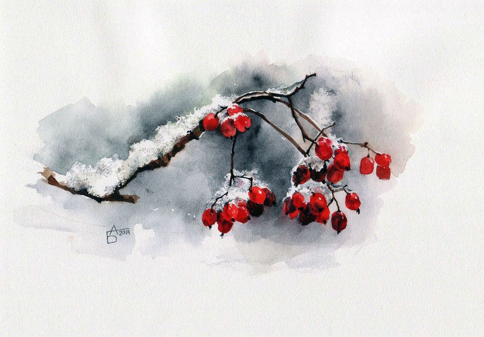 ![Анастасия Беседина акварель рябина]()