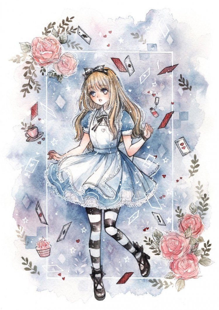 ![Рисунки в скетчбук Алиса в стране чудес]()