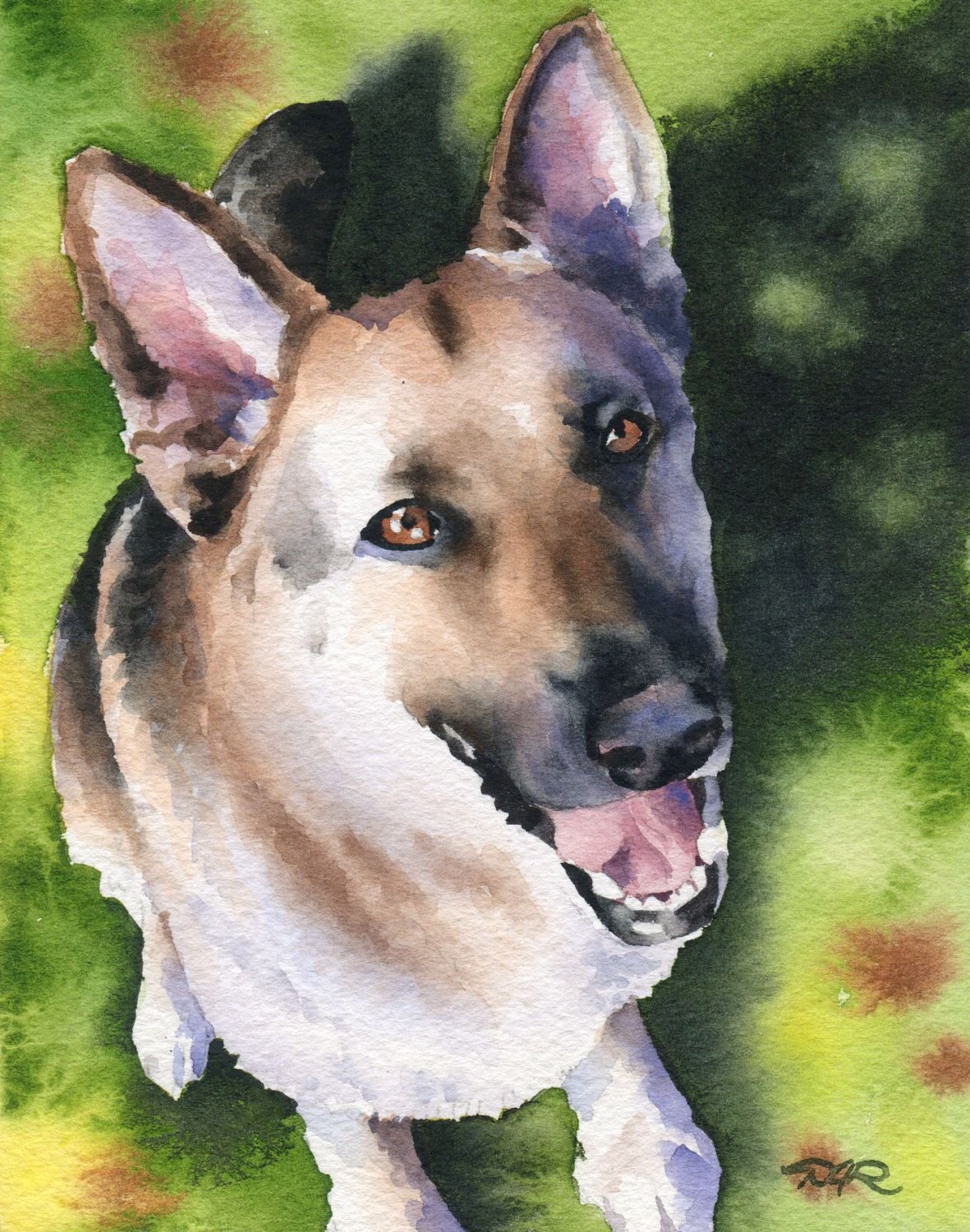 Изображение немецкой овчарки, выполненное акварелью, является настоящим произведением искусства. Объединение великолепной техники акварельного рисования с изображением этой породы собаки создает неповторимую атмосферу. Каждая деталь рисунка передает непревзойденную красоту и грацию немецкой овчарки: ее мощный и пропорциональный телосложение, выразительные глаза и характерный окрас шерсти. Благодаря акварельной технике, рисунок приобретает особую живость и яркость цветов, заставляя каждого зрителя почувствовать энергию и силу этой породы. Это уникальное изображение немецкой овчарки акварелью - прекрасный способ запечатлеть ее неповторимую красоту и дать ей новую жизнь.