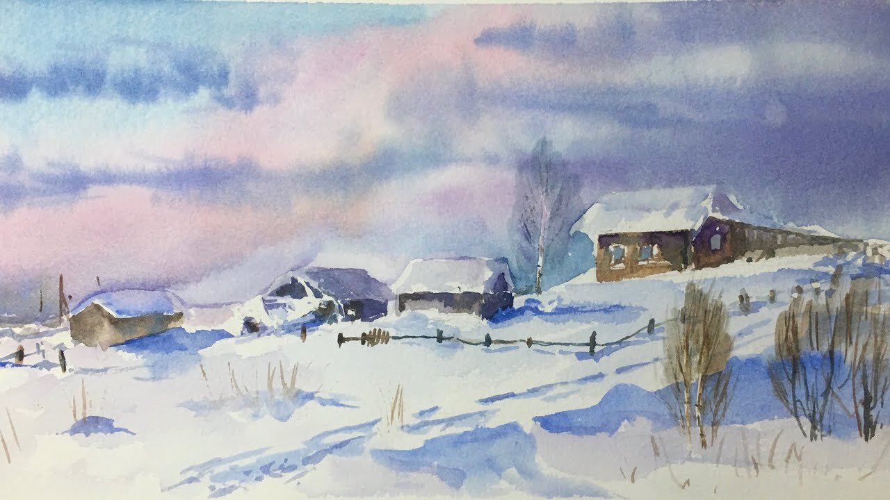 Рисование акварелью зима