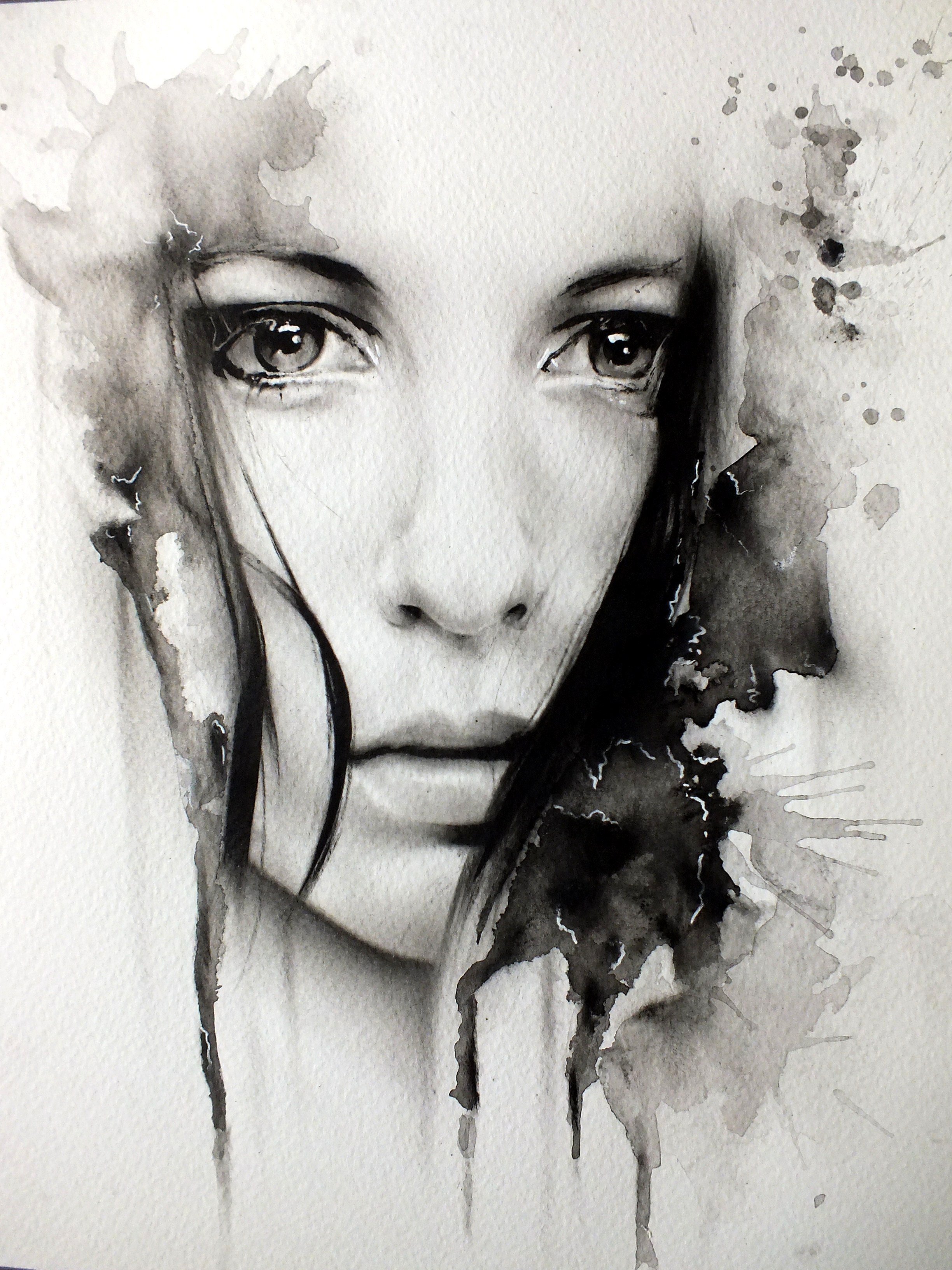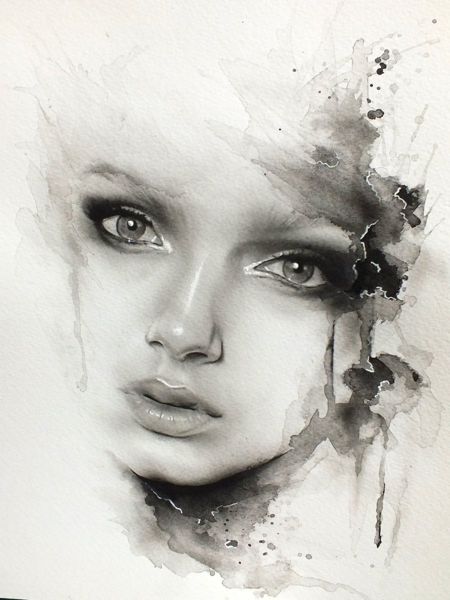 Черно белый портрет акварелью