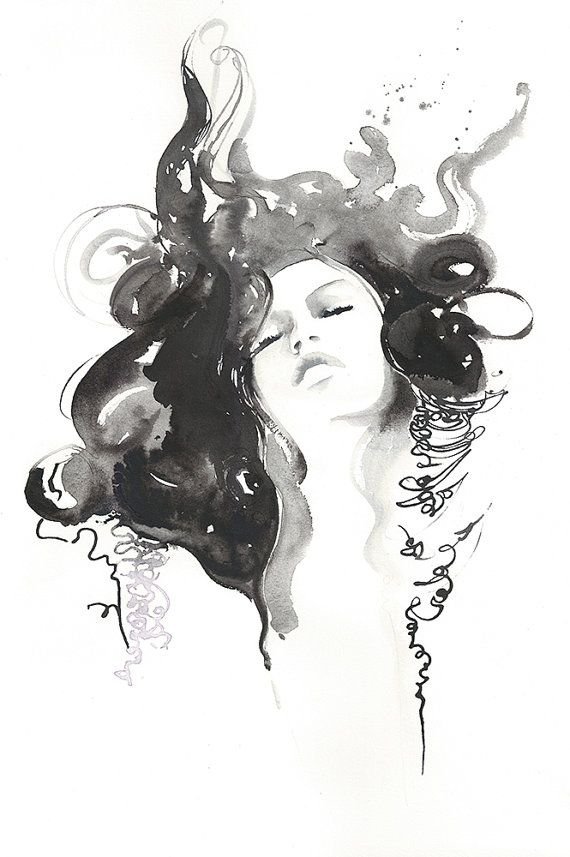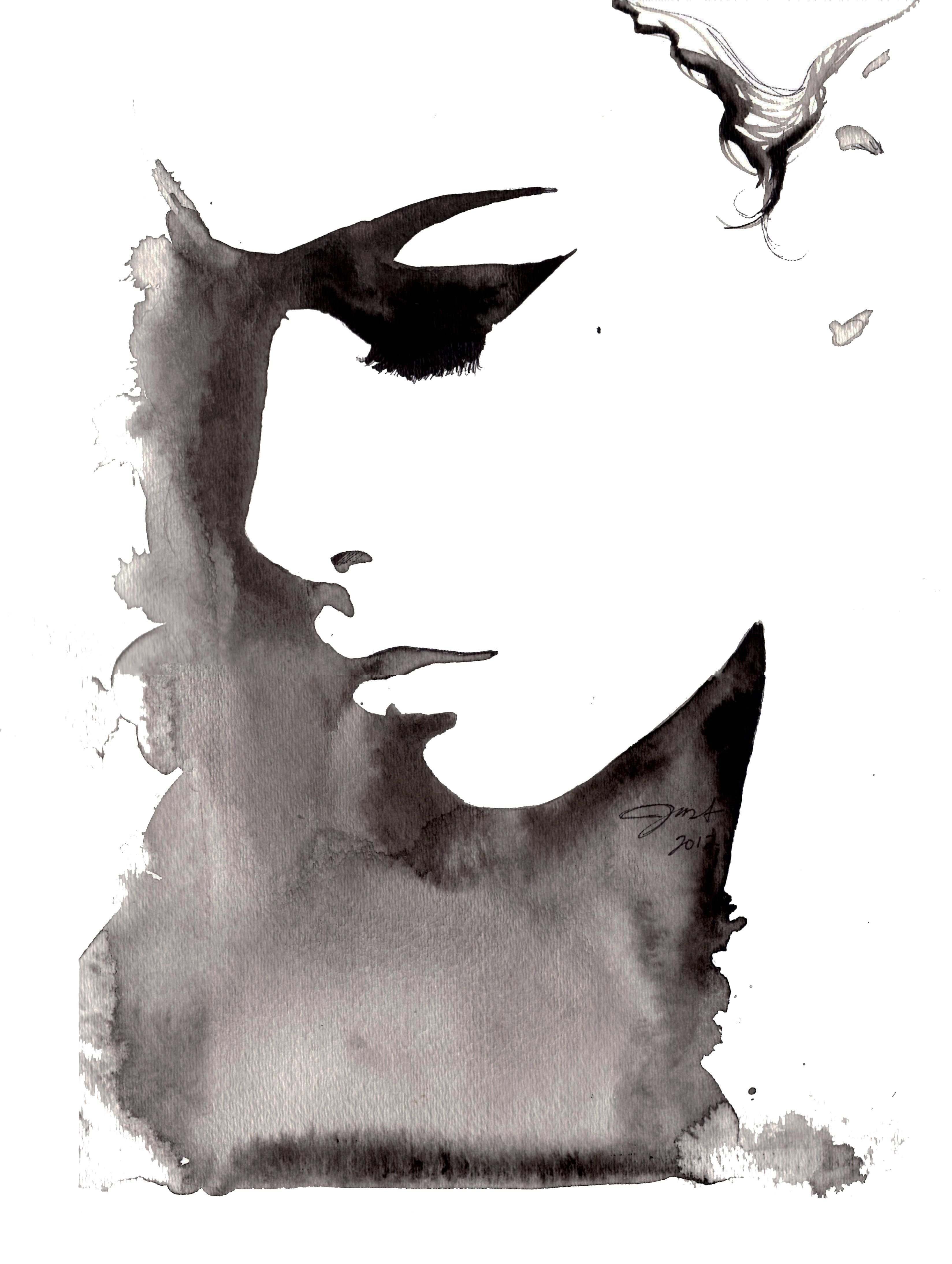 ![Фэшн иллюстрация тушью]()
