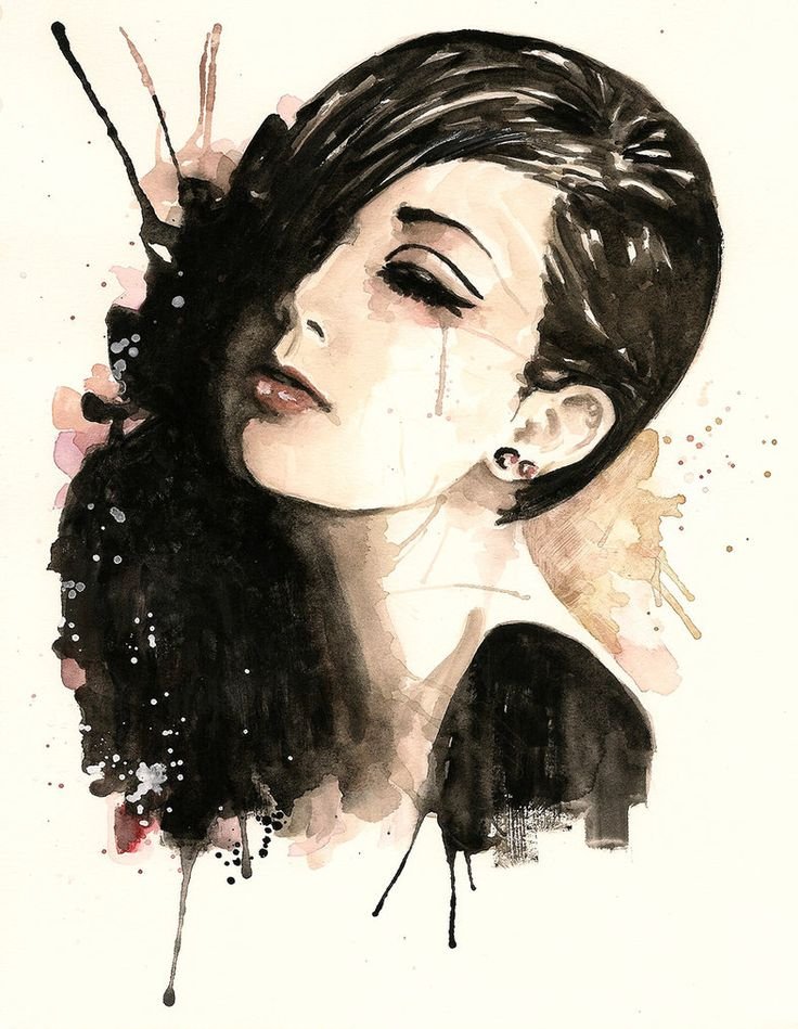 ![Лицо девушки акварелью]()