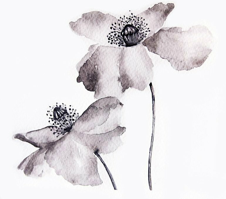 Монохромные акварели цветы