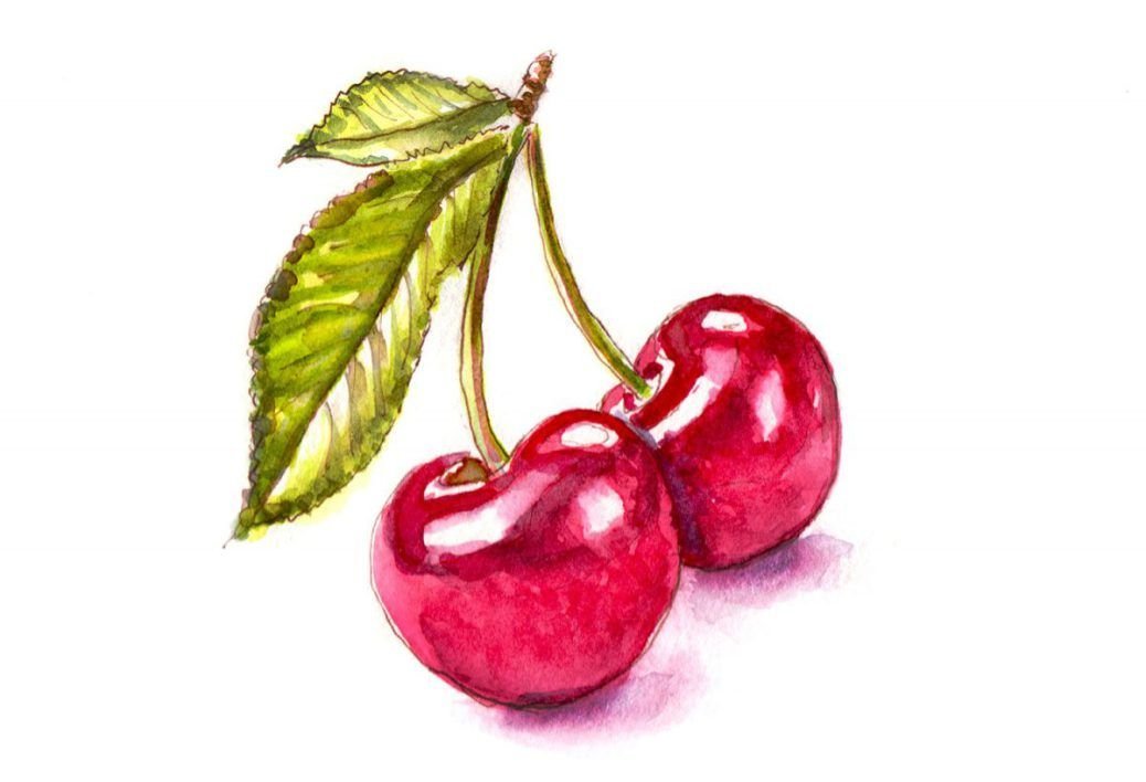 Вишня акварелью для начинающих
