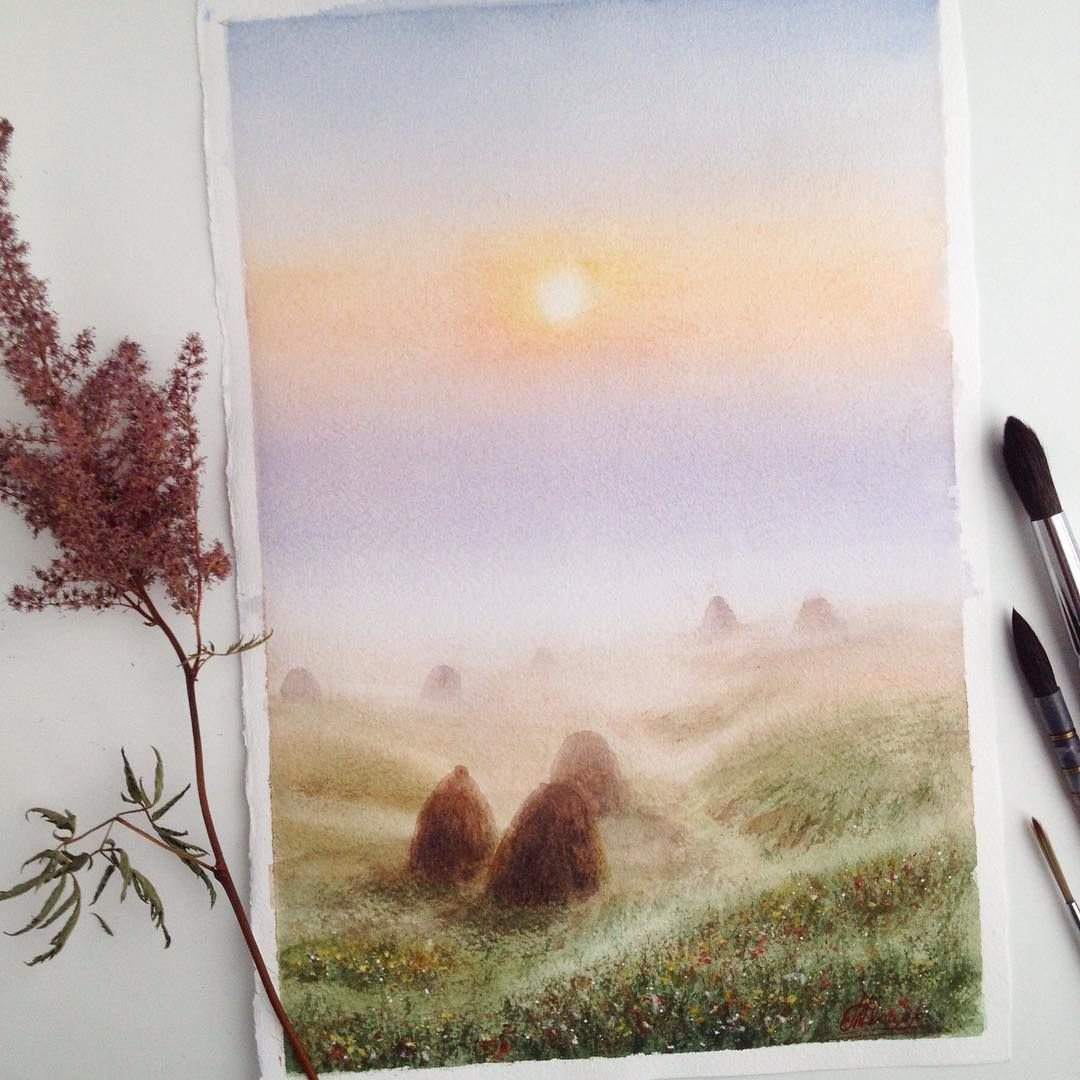 Рассвет акварелью - это захватывающий и нежный момент, который может быть запечатлен на бумаге с помощью этой техники рисования. Акварельные краски прекрасно передают яркие и сочные цвета раннего утра: от нежно-розового до оранжевого и голубого. Используя различные пастельные оттенки, можно создать впечатление легкости и прозрачности неба, а также отразить отражение первых лучей солнца на поверхности воды или зелени деревьев. Рисунок, выполненный акварелью, позволяет передать всю красоту и атмосферу рассвета, создавая образ, который будоражит воображение и вызывает чувство спокойствия и восхищения при его рассмотрении.