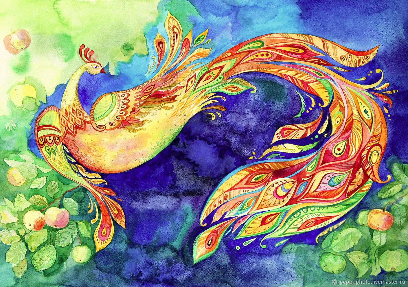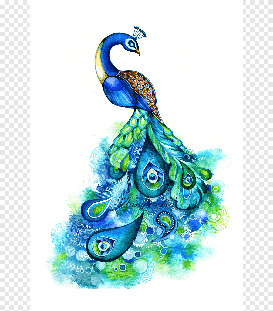 ![Павлин акварелью]()