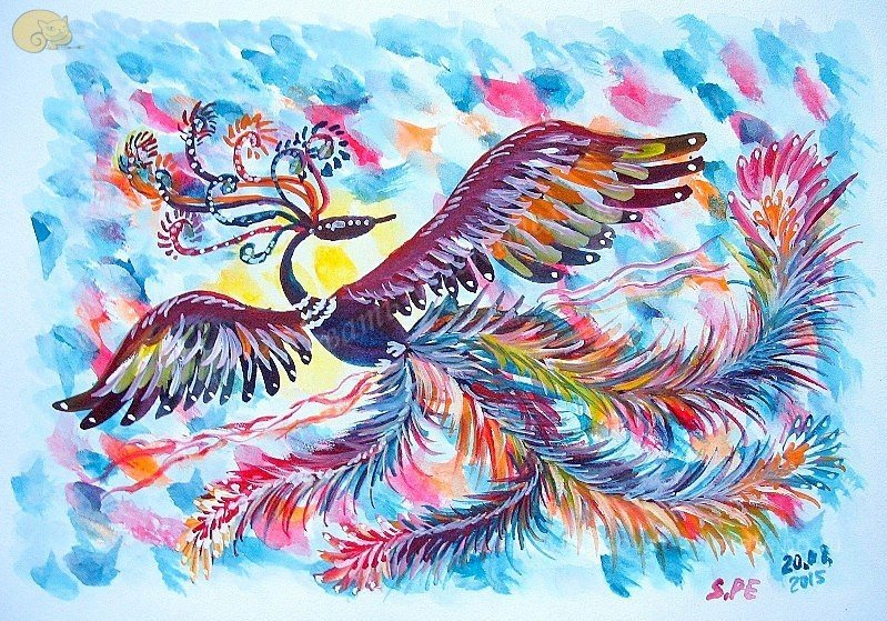 ![Сказочная птица гуашью]()