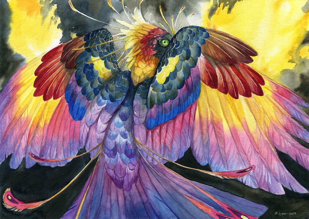![Сказочная птица акварель]()