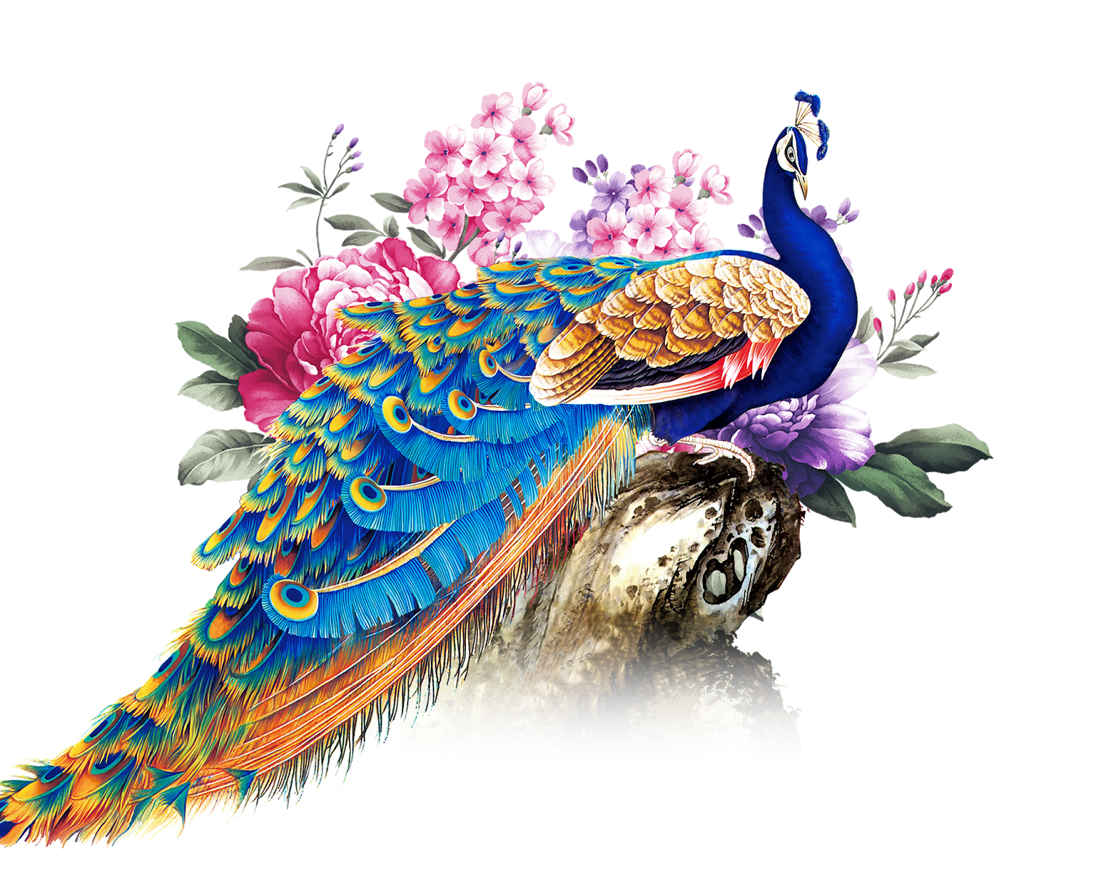 ![Павлин на белом фоне]()