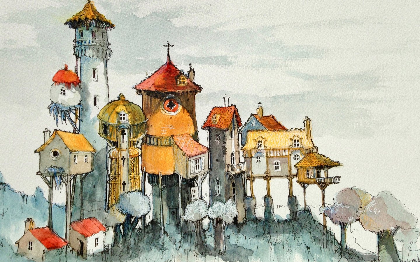 Акварельные домики сказочные