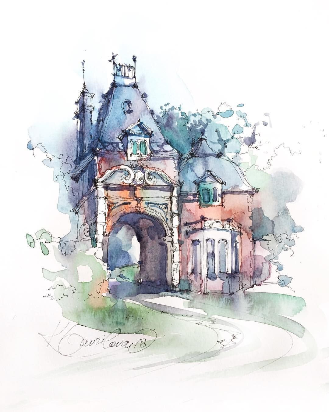 ![Сказочный город акварель]()