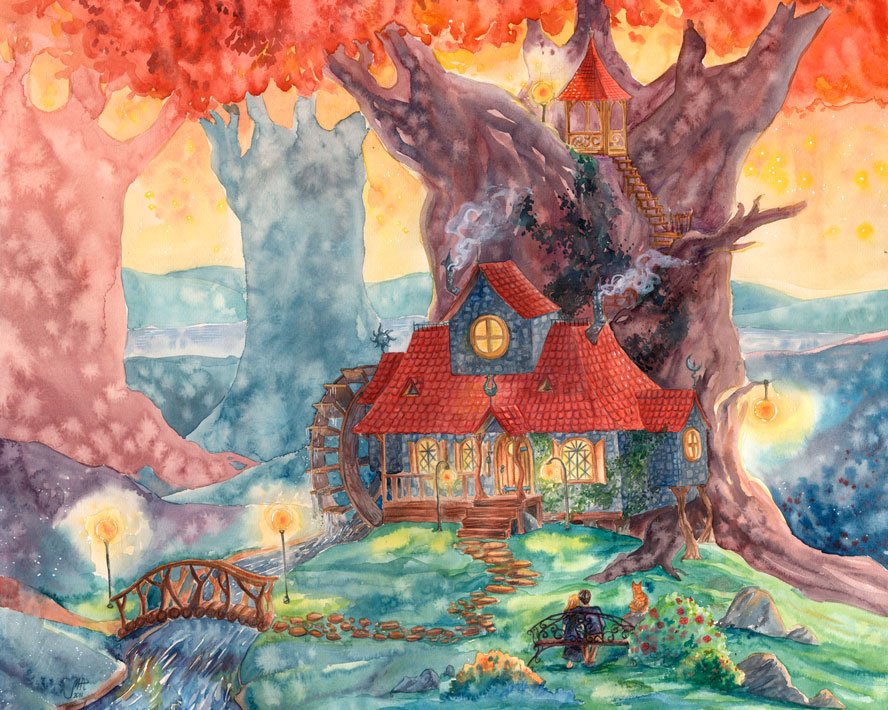 ![Сказочный пейзаж акварелью]()