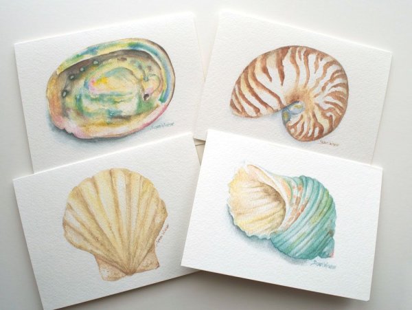 Раковины Каури акварелью