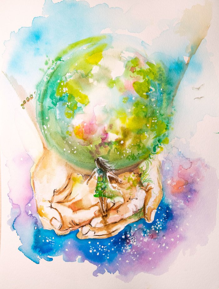 ![Земля и ребенок акварель]()