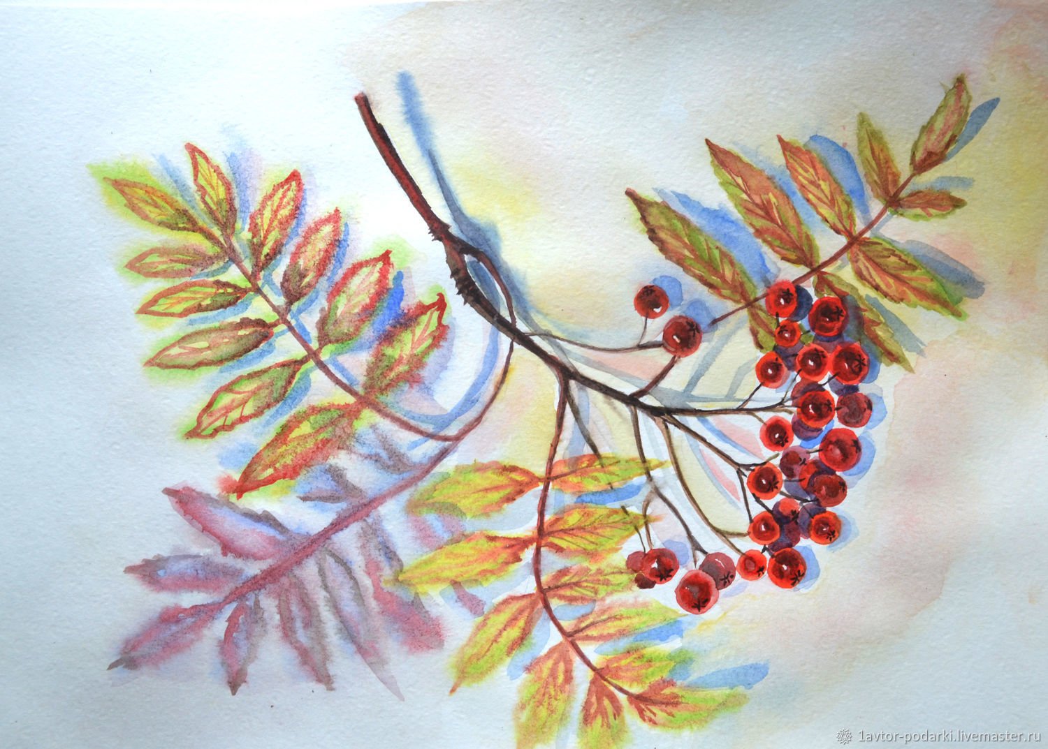 Картина "Ветка рябины" выполнена в технике акварели. В нежных оттенках красного и зеленого художник передает красоту и изящество этого природного объекта. Ветка рябины привлекает взгляд своими яркими красными плодами, которые создают привлекательный контраст с зеленым фоном листьев. Рисунок выполнен мастерски, придающий ему ощущение реализма и детализации. Эта акварельная работа идеально подойдет для украшения интерьера и станет прекрасным элементом в вашей коллекции произведений искусства.
