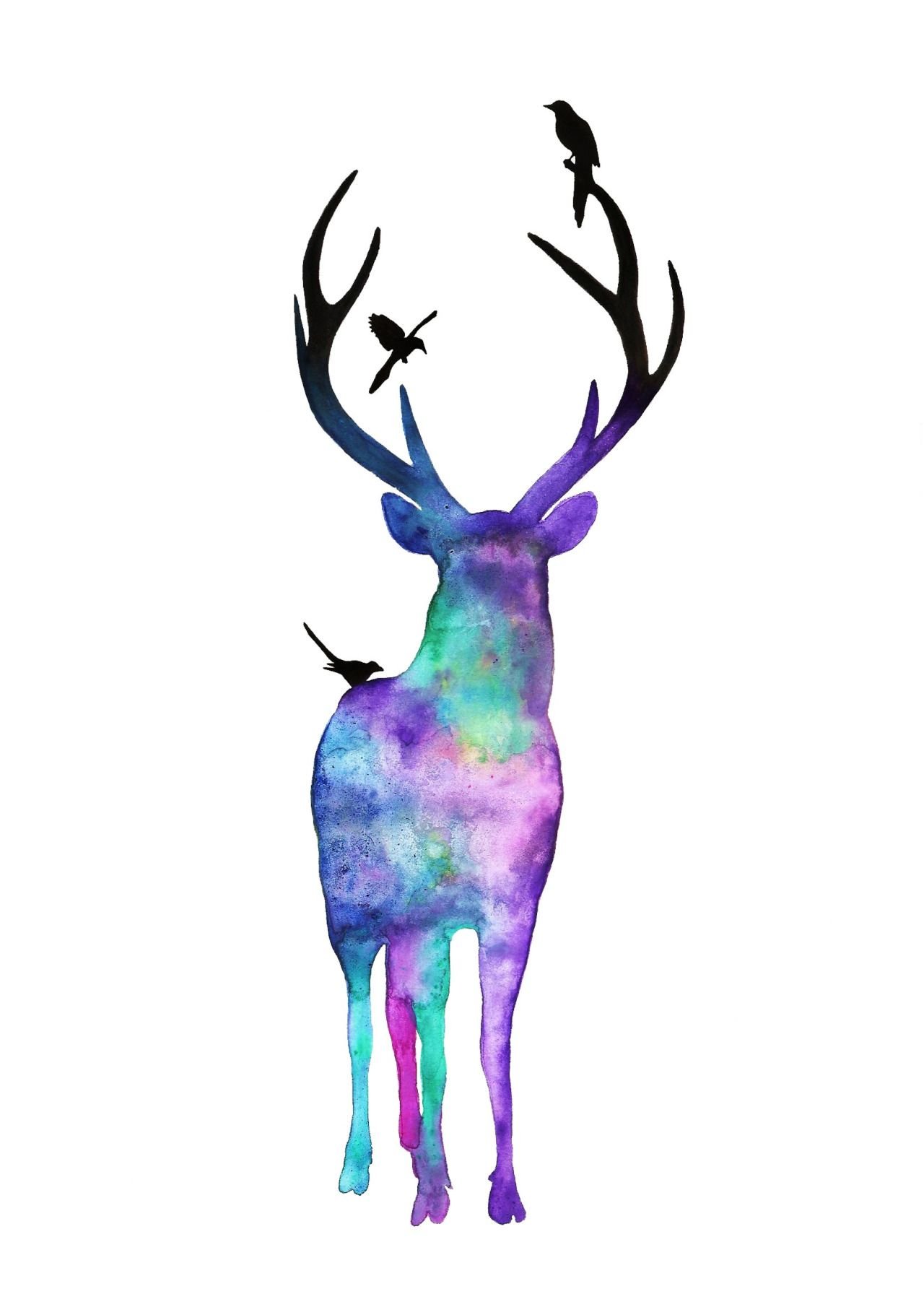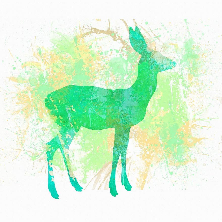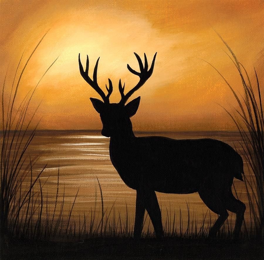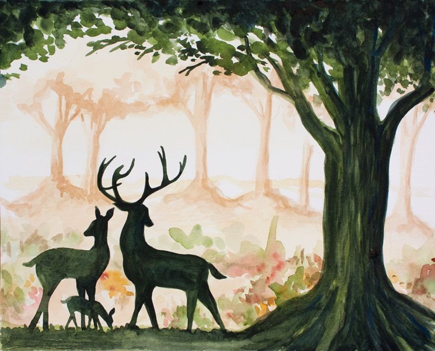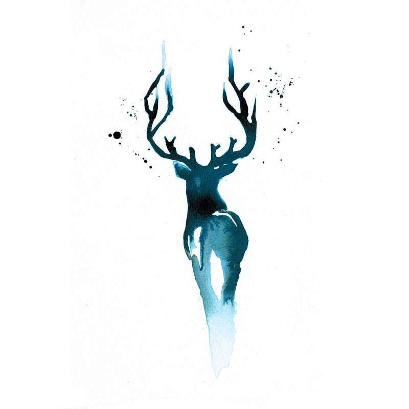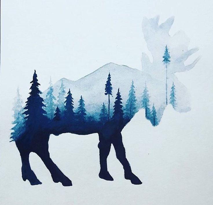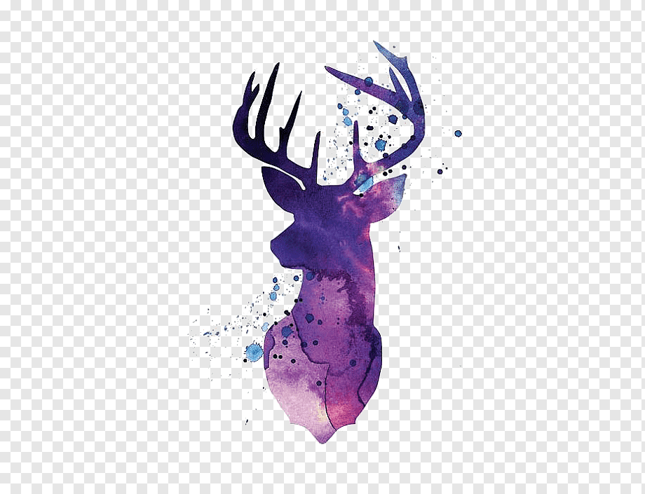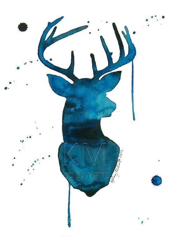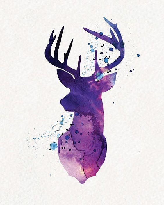 ![Силуэт оленя акварелью]()