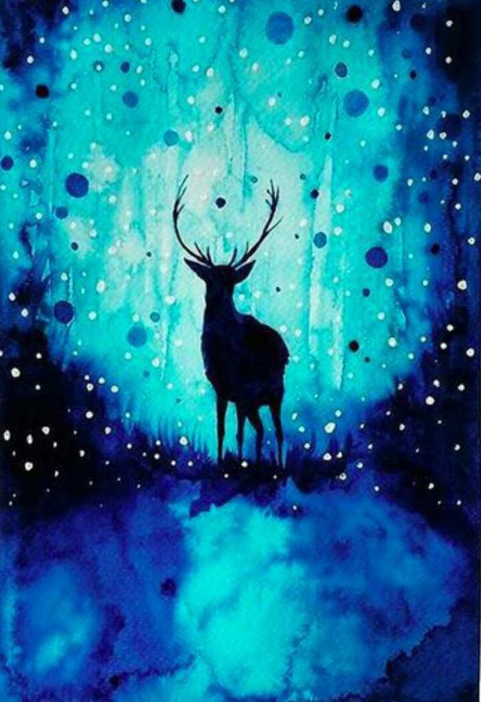 ![Олень и космос акварель]()